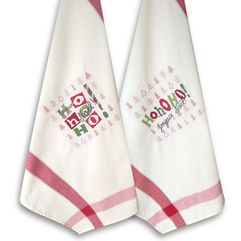 à broder avec deux fils; n’hésitez pas à changer les couleurs en harmonie avec le liseré du torchon.
