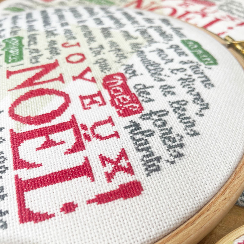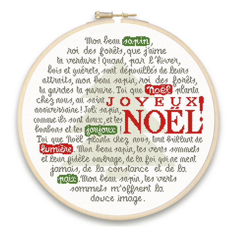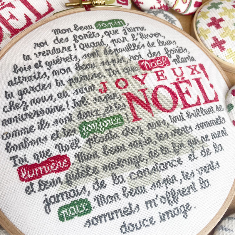 • se brode en un fil sur toile aida 8 points/cm Zweigart  coloris écru 101 , ce qui donne comme  dimensions : 21.6 cm x 21.6 cm en cadre tambour de 24 cm  ou sur torchon Graziano BONN ou ISA à liserés vert, gris ou rouge