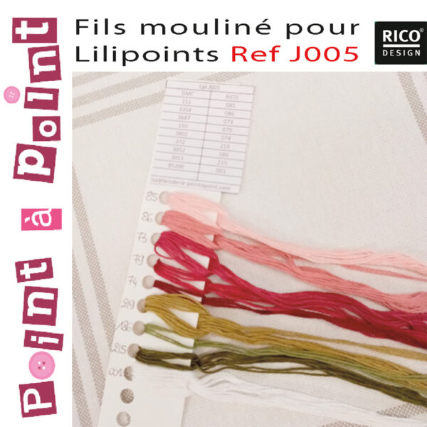 Pochette de fils RICO calculés pour broder le modèle LYS sur fond BLANC en aida 8 points
